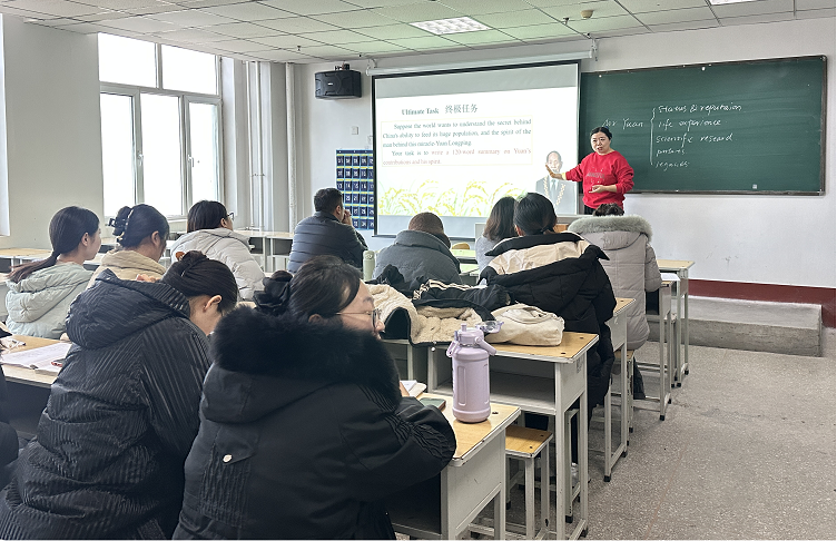 为深化大学英语课堂教学改革,探索高效课堂教学新模式,切实提升人才培养质量,2025年12月23日,基础教学部大学英语教研室在1-1014组织开展课堂教学改革创新活动。基础教学部主任牛谷芳老师、英语教研室主任樊宪辉老师及无课英语教师齐聚一堂,共同观摩学习、交流研讨。